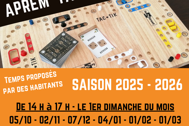 Le01marsJeuAprèm Tac-TikDu 14:00 à 17:00 Centre socioculturel L’Arpentèle 9 rue Paul-Gellé 79200 Châtillon-sur-Thouet