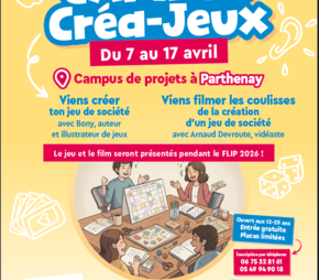 Campus Créa'jeux est ouvert aux jeunes de 12 à 25 ans. Les ateliers auront lieu pendant les vacances scolaires, du 7 au 17 avril 2026 au campus de projets de Parthenay, animés par des professionnels.