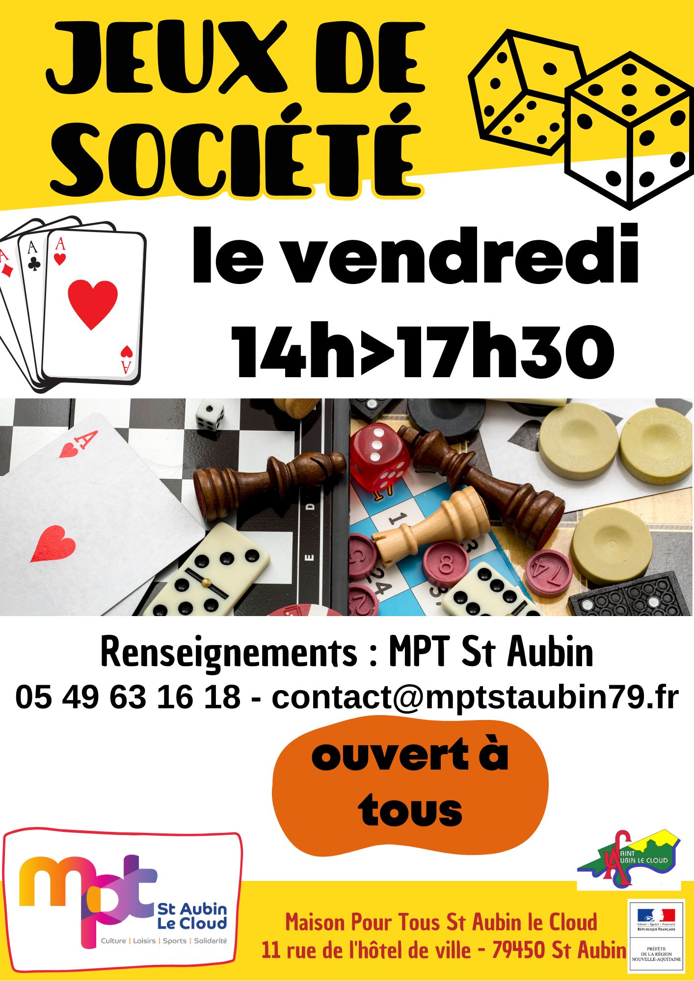 Alors on vous attend le vendredi après-midi pour un temps jeux de société ! Une nouvelle proposition d’activité à la MPT ouverte à toutes et tous.